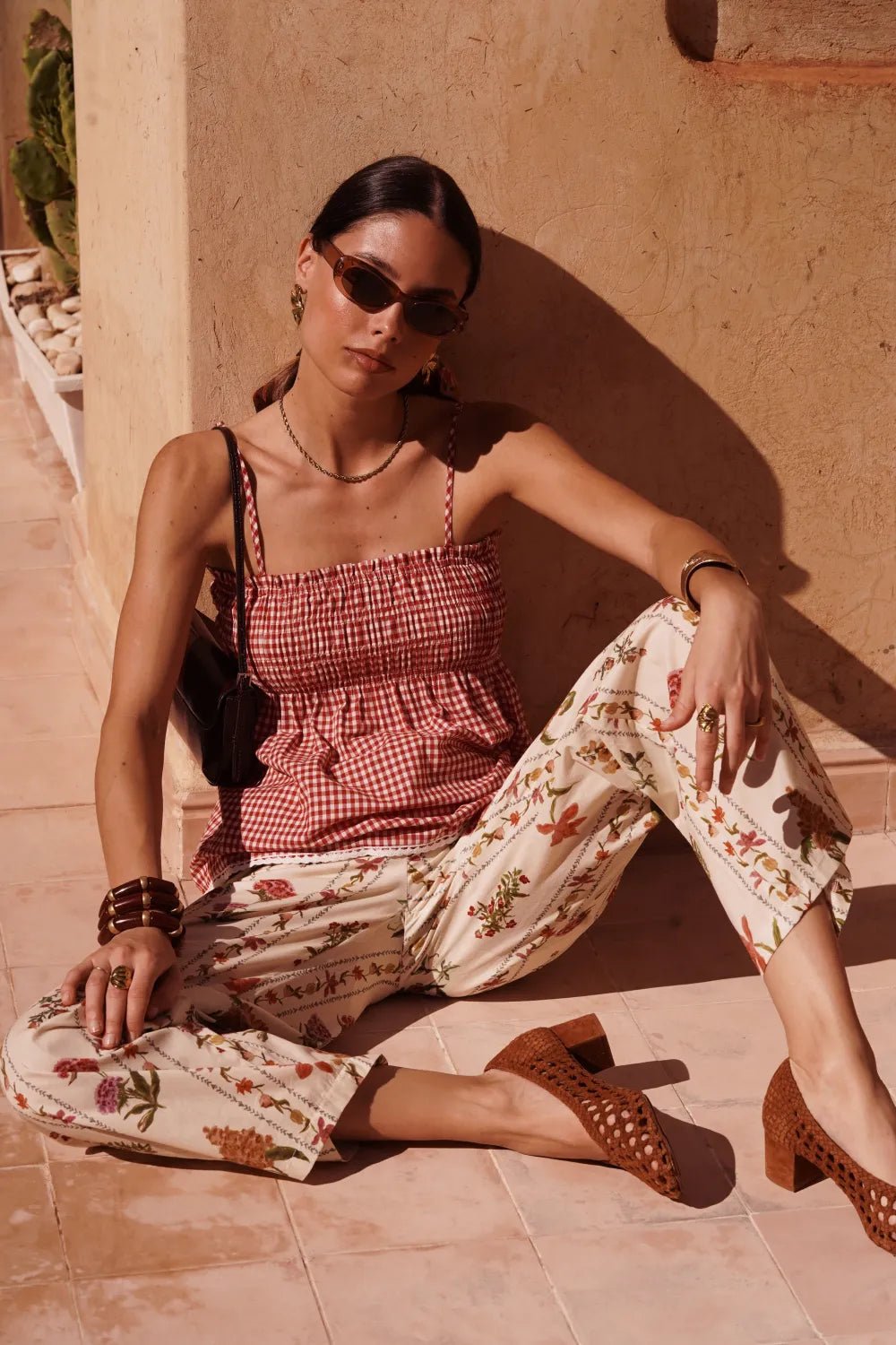 Haut femme vichy rouge 100% coton – Top smocké chic été