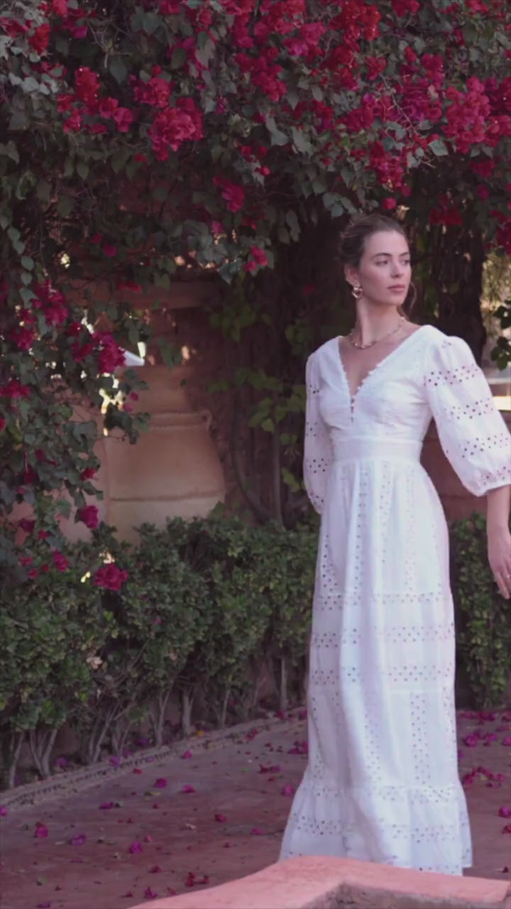Laissez-vous séduire par l’élégance bohème de cette robe longue en coton ajouré type broderie anglaise. Légère, respirante et ultra féminine, elle sublime la silhouette avec un tombé fluide et des détails raffinés.